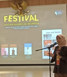 [caption id="attachment_1700" align="alignnone" width="261"] Ketua Penyair Perempuan Indonesia (PPI) Kunni saat memberi kata sambutan pada Festival PPI di Jakarta[/caption]