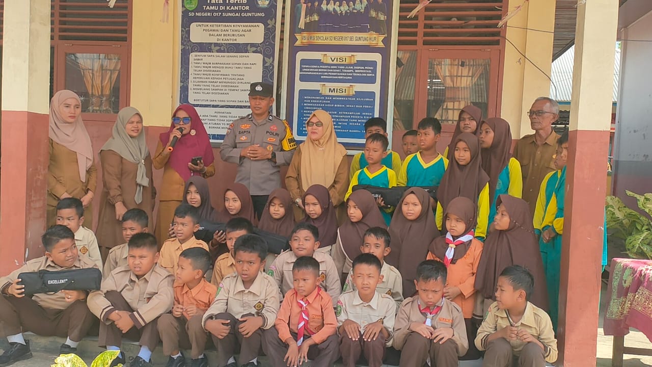 Bantuan diserahkan secara simbolis oleh Bhabinkamtibmas Sei Guntung Hilir, Aiptu Sapta Kumara, S.E., mewakili Kasat Reskrim Polres Inhu. Kegiatan ini disambut hangat oleh pihak sekolah, para guru, serta para siswa yang tampak antusias menerima bantuan alat musik pendidikan tersebut.